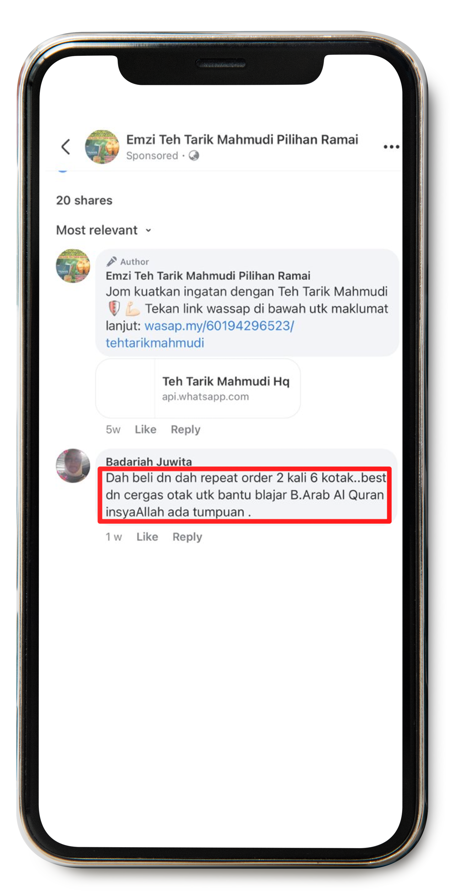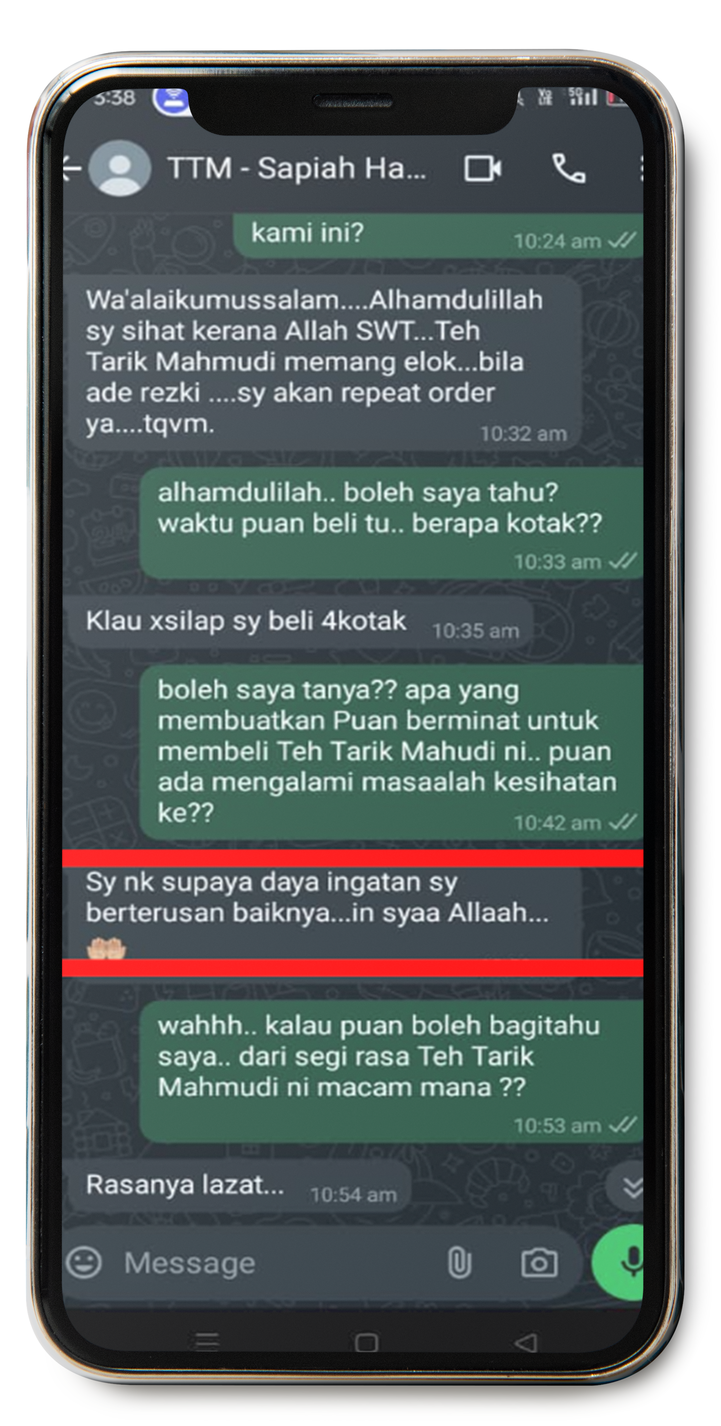 “Rasa Teh Tarik Mahmudi sedap guna teh wangi, badan pun terasa segar. Suka dengan teh ni. Terima kasih."